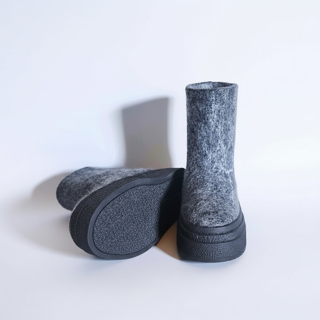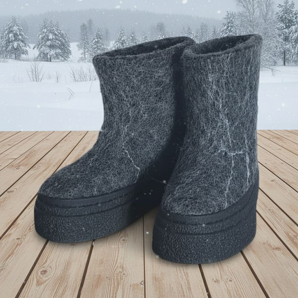 Storapadžiai velti auliniai batai – tai aukštos kokybės rankų darbo moteriška avalynė, pagaminta iš 100 % natūralios avies vilnos. Šie batai sukurti taip, kad užtikrintų maksimalų šilumos ir komforto pojūtį net ir pačiomis atšiauriausiomis oro sąlygomis. Natūrali avies vilna nuo seno vertinama dėl savo termoreguliacinių savybių: ji geba išlaikyti šilumą, kartu leisdama pėdai kvėpuoti ir išlikti sausai. Tai avalynė, kuri puikiai tinka tiek žiemos speigui, tiek vėsoms rudens dienoms.