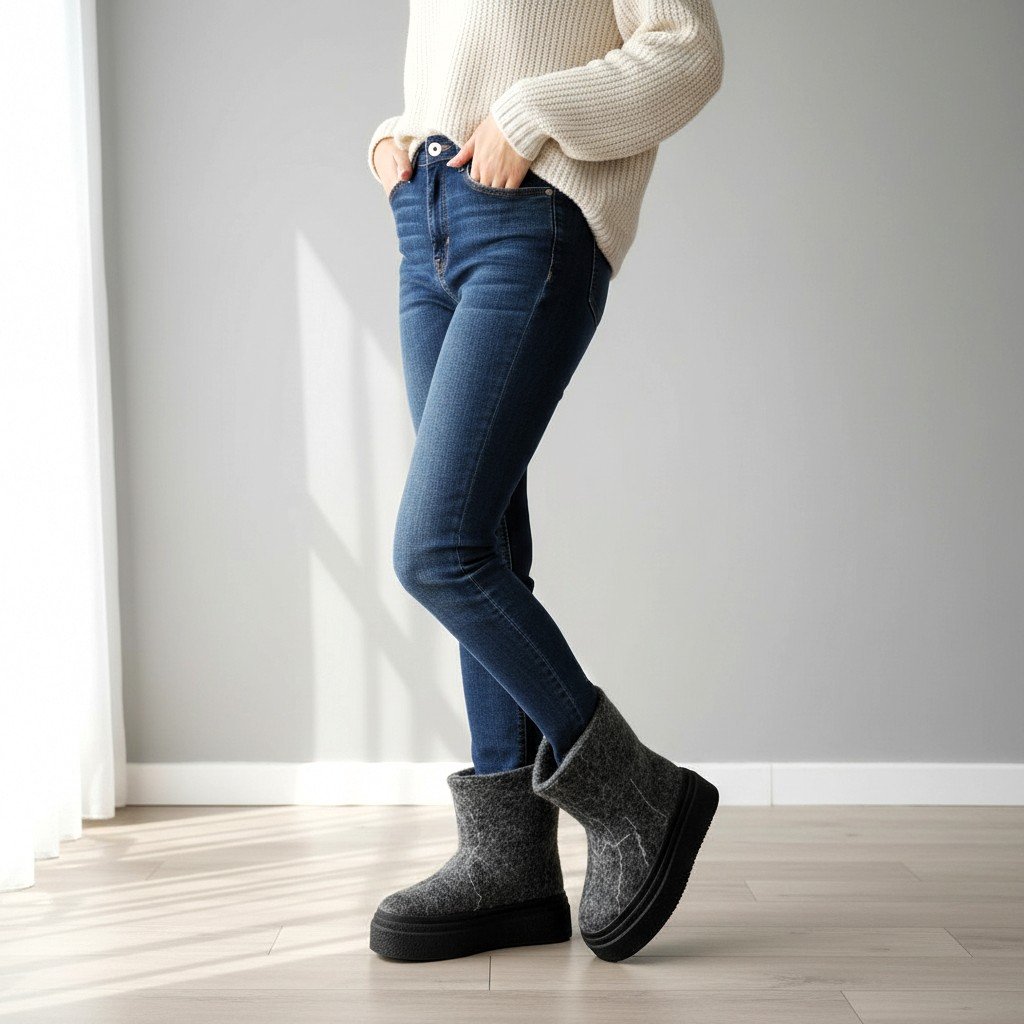 Storapadžiai velti auliniai batai – natūralios vilnos rankų darbo avalynė